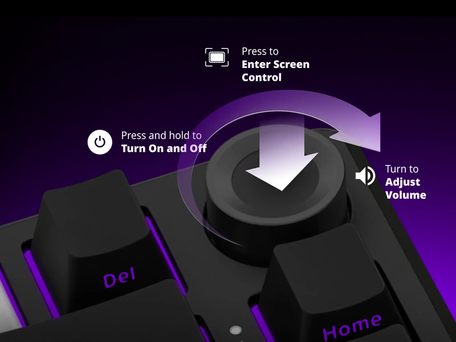 El mando multifunción permite un manejo cómodo. Gírelo para ajustar el volumen o manténgalo pulsado durante 3 segundos para encender y apagar el teclado. El mando también permite cambiar entre métodos de conexión.